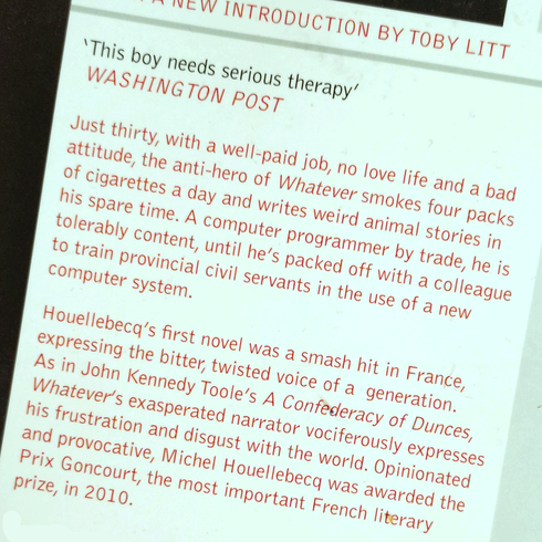 The book is about a 30 year old software programmer with a resigned view of life. Given the similarity to my own situation, the description piqued my curiosity. It is probably known as Whatever to most people, due to the dominating position the English language holds in Western cultural sphere.