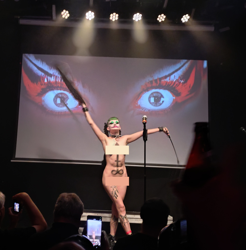 The band is the creation of Aranea Peel, but (with her impressive credentials) she is not the only interesting persona you see on stage. The other person who caught my attention was Nana Nocturnal. Why, one may ask? Well, she has a way of making herself difficult to overlook: